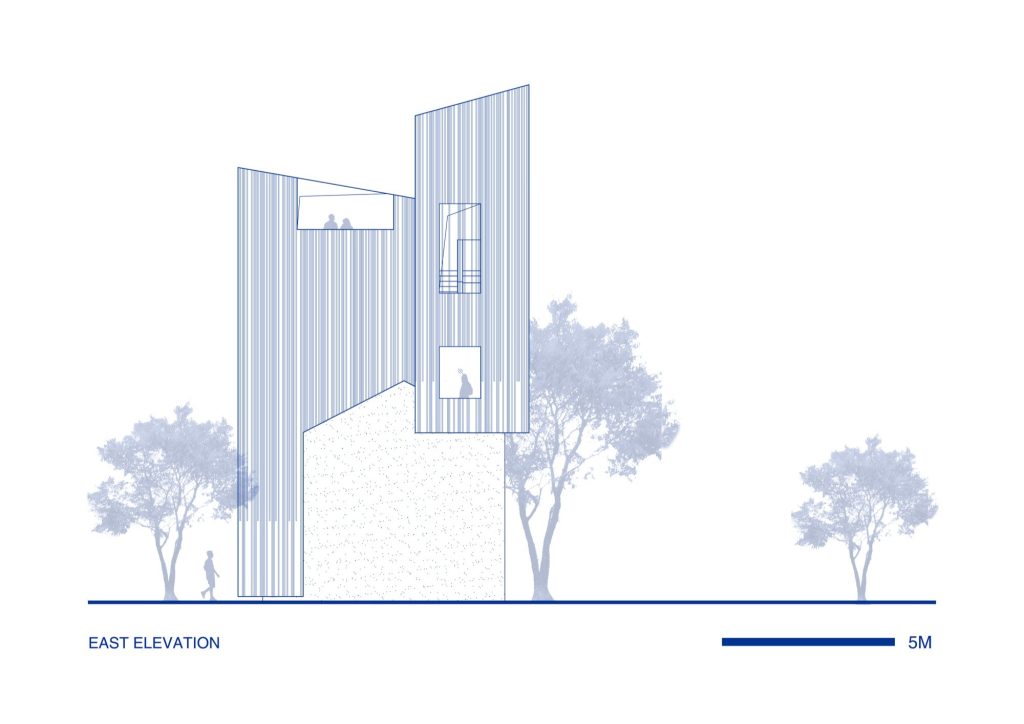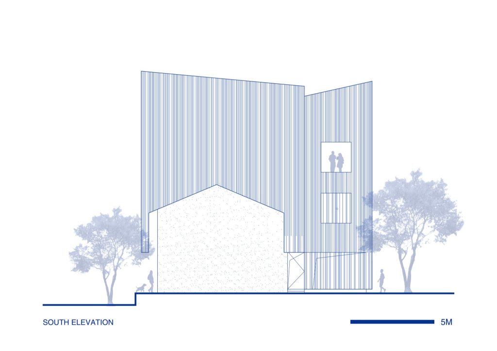 As daylight changes, the lattice produces a subtle optical vibration. The building appears to shimmer, its colour and opacity modulating as the sun moves across the village. This colour shifting skin performs a crucial balancing act: it allows the project to remain bold, while giving it an unexpected lightness, making the building feel porous rather than closed, and present without being aggressive.