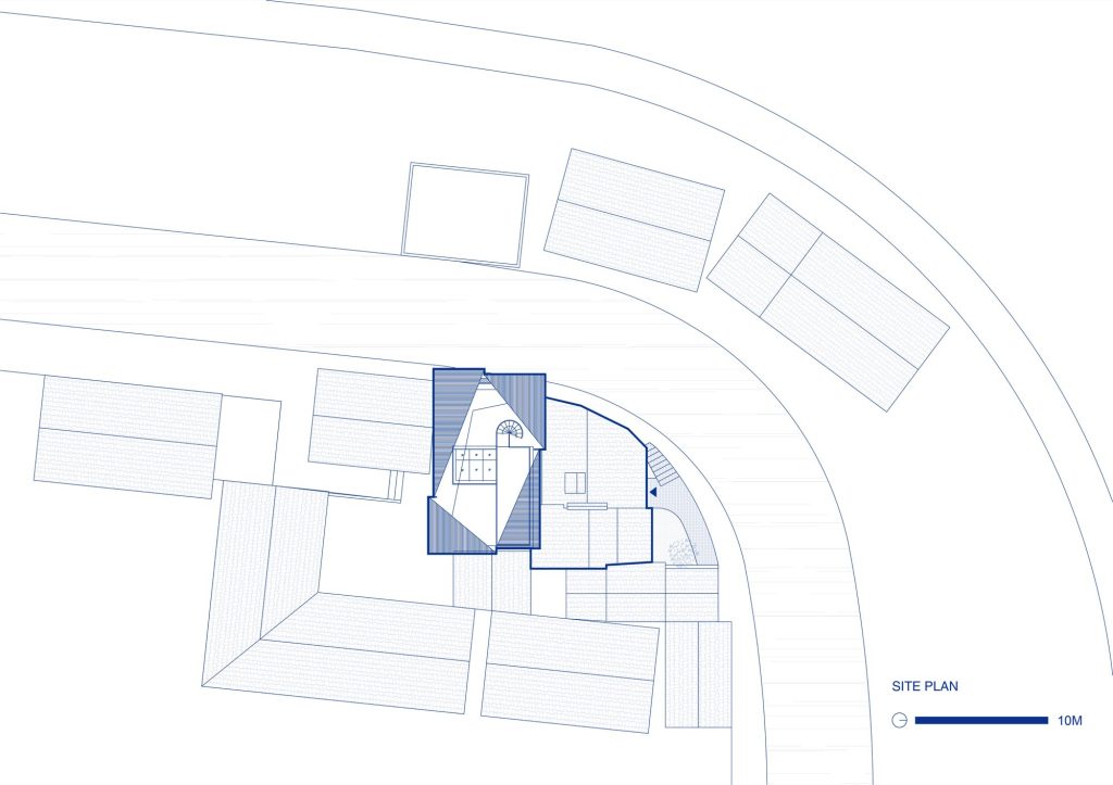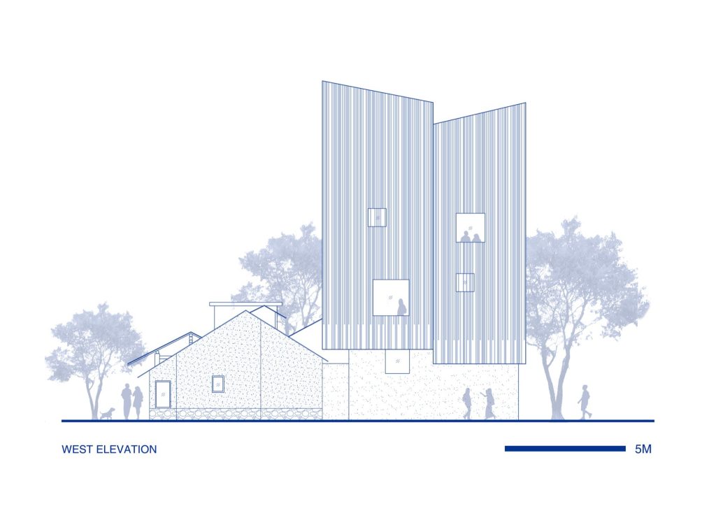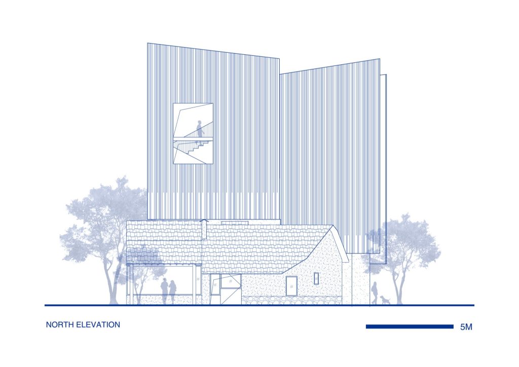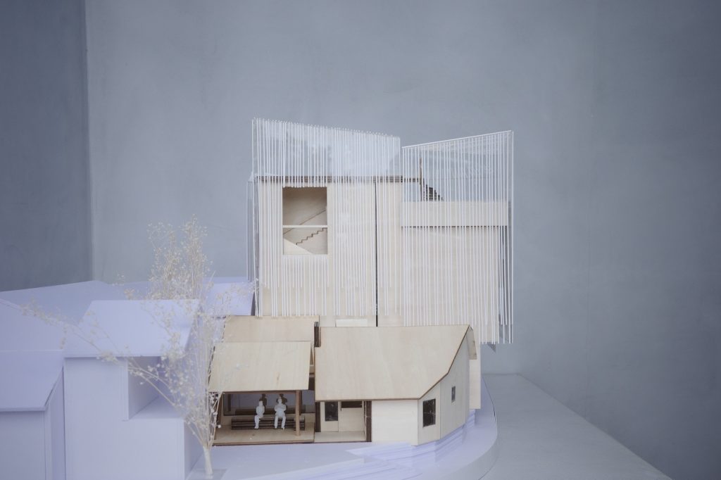 This strategy also sets up a more human relationship to the site. Rather than dominating the village street as one heavy object, the building reads as a cluster of parts, closer in spirit to the incremental logic of rural construction. The result is an intervention that feels contemporary in form, yet grounded in a familiar idea: that architecture can be made from a sequence of smaller presences, connected by shared courtyards and thresholds.