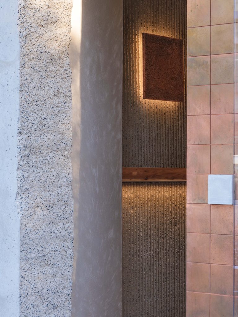 A dedicated selling window, paired with an inventive opening mechanism, adds a note of performance. Open, it encourages exchange and proximity, collapsing the distance between transaction and experience. Closed, the hand-hammered copper plate reads as an object in its own right, closer to an artwork than a shutter, and quietly amplifies the café’s role as a landmark inside the market’s vibrant collage.