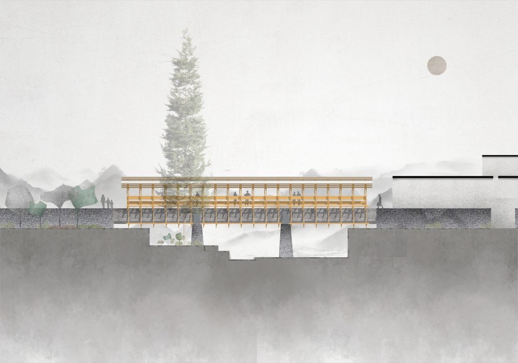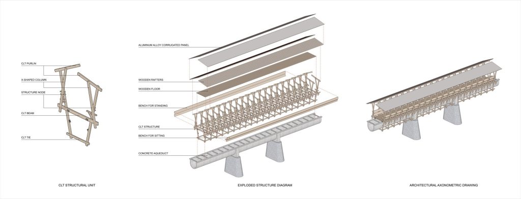 Intertwined with the old aqueduct, the covered bridge becomes both tribute and infrastructure: a place to gather, pause, and reconnect, turning forgotten utilities into a renewed commons for Fengwu’s future.