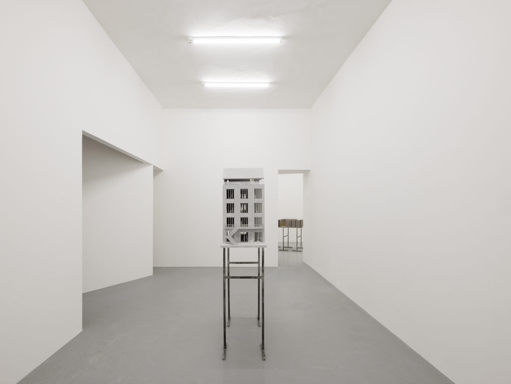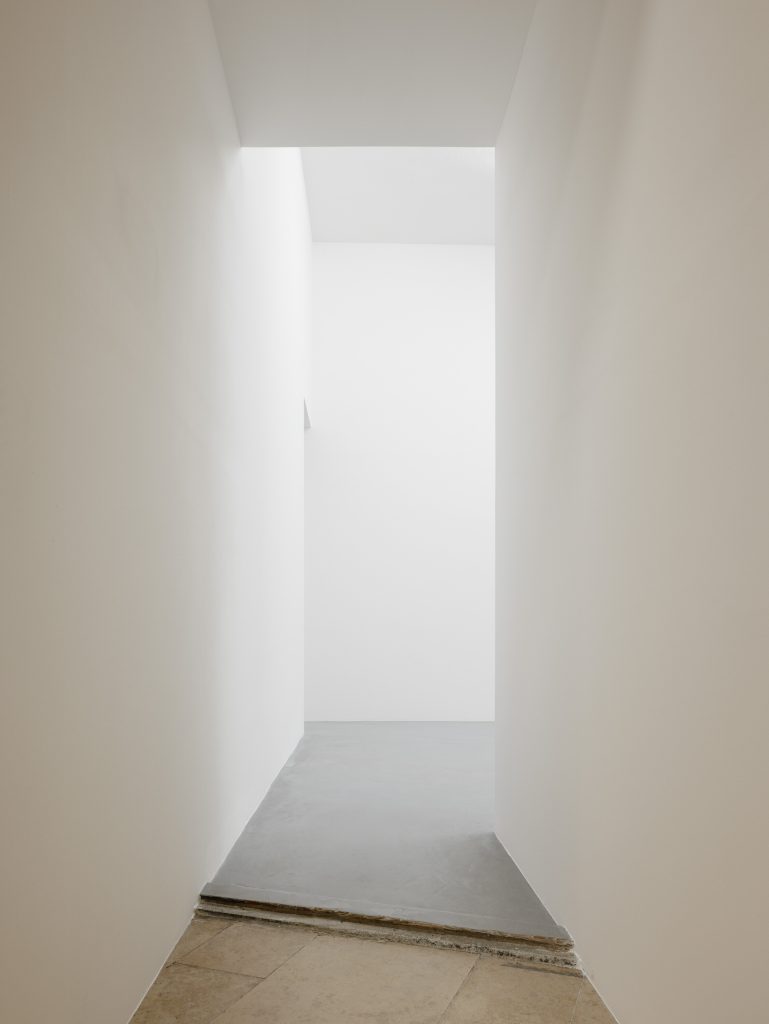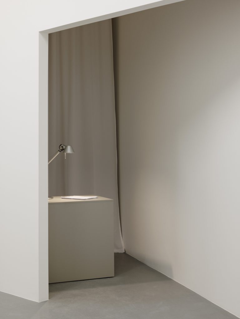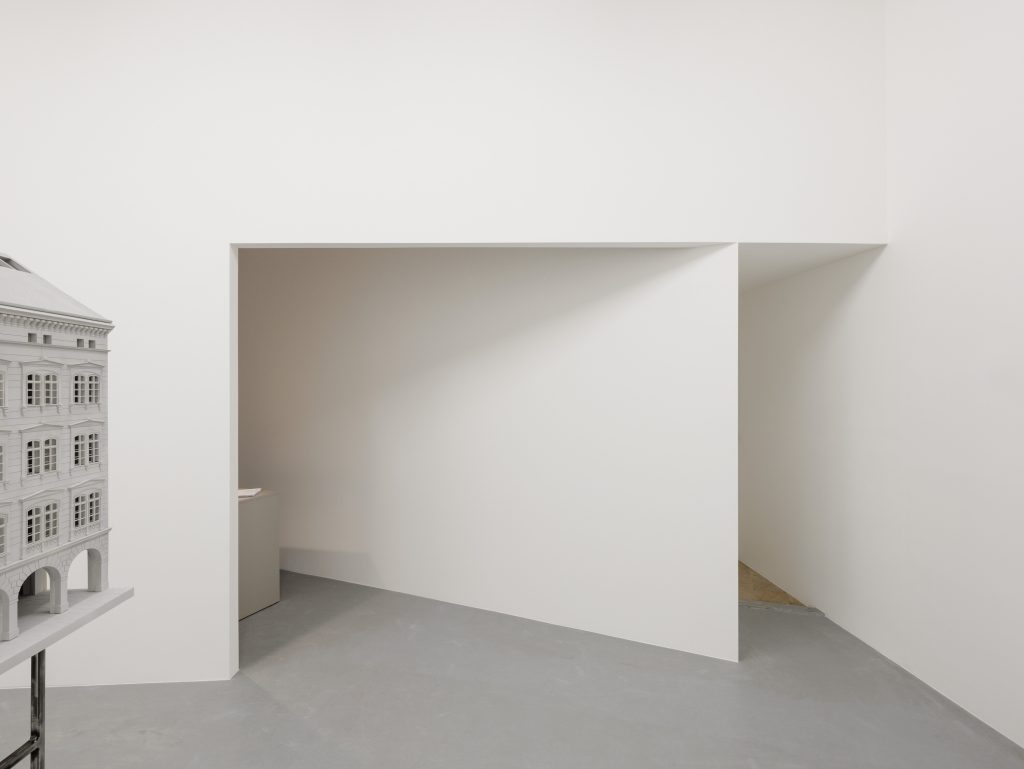 The title A House Within carries a double meaning Symbolically, it refers to the exhibition’s intention to present architecture as a spatial experience. The inserted house transforms the way one moves, sees, and perceives light and detail, offering a space for calm and focus. Through a narrow slit, it is still possible to glimpse the gallery’s original interior.