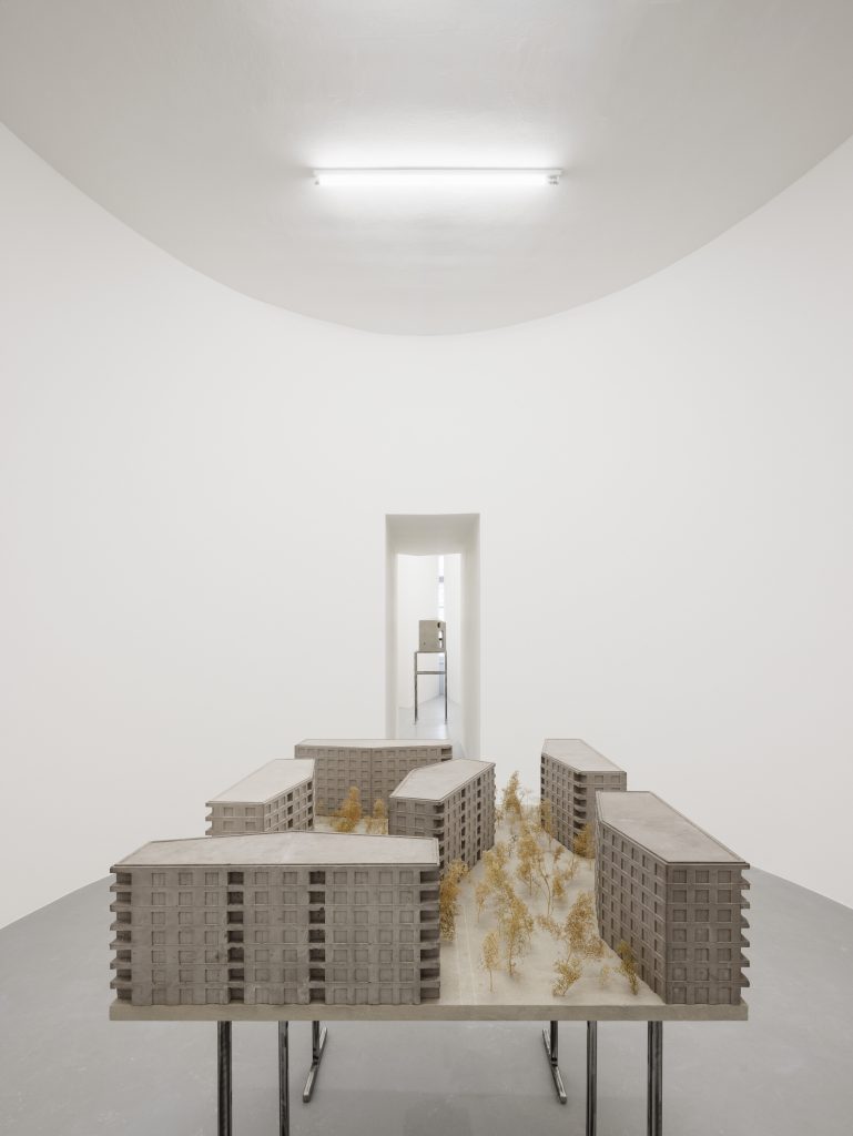 The showcased projects reveal various phases and scales of the studio’s work, from solitary houses in the landscape to large-scale public buildings. The exhibition begins with the model of the planned House of Art reconstruction, while the other projects are united by a consistent approach to context, scale, and structure.