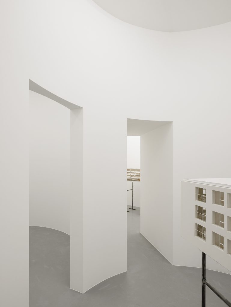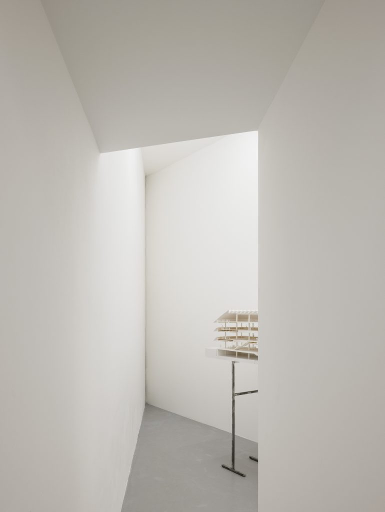 Inside the newly created “inner house,” large-scale architectural models are presented, crafted specifically for this exhibition. These are not merely project representations, they are autonomous objects that can be walked around, viewed from inside and outside, read as designs, and experienced as spaces. They convey the studio’s approach rooted in spatial intuition, carrying atmosphere and materiality. Together with the new exhibition structure, they create situations that aspire to be architecture in themselves.
