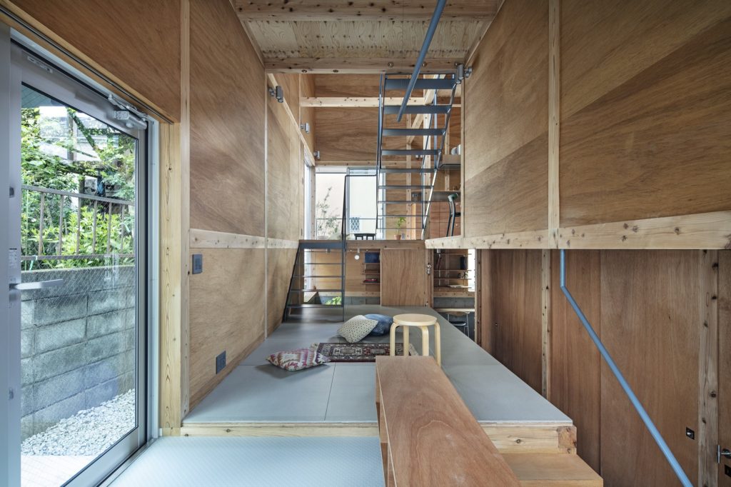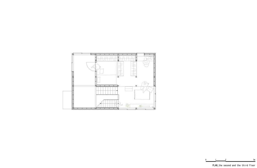 Private rooms occupy the semi basement and the third floor, each compact but carefully calibrated, ranging from 4.5 to 7.3 square metres. Sliding partitions and mobile furnishings allow these spaces to toggle between connection and withdrawal, opening toward communal zones when desired or sealing into complete seclusion. Privacy here is not a fixed allocation but a daily choice, adjustable by each resident according to mood, work, rest, or family activity.