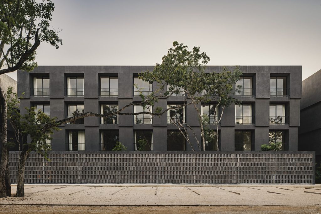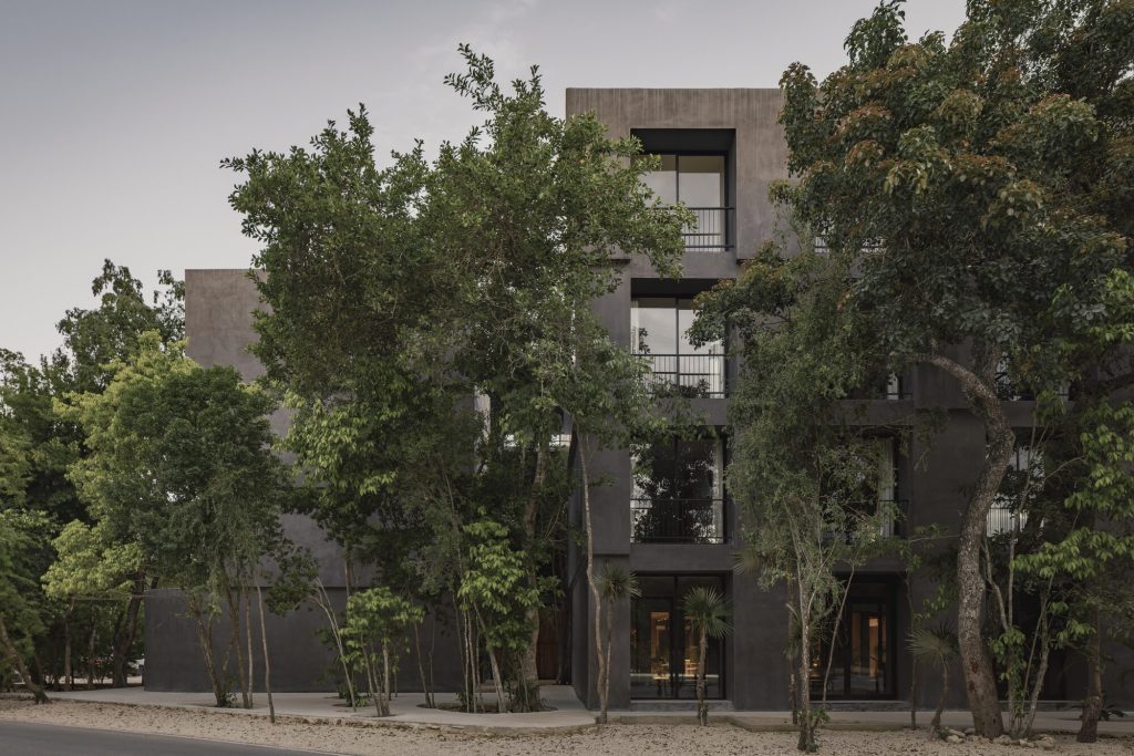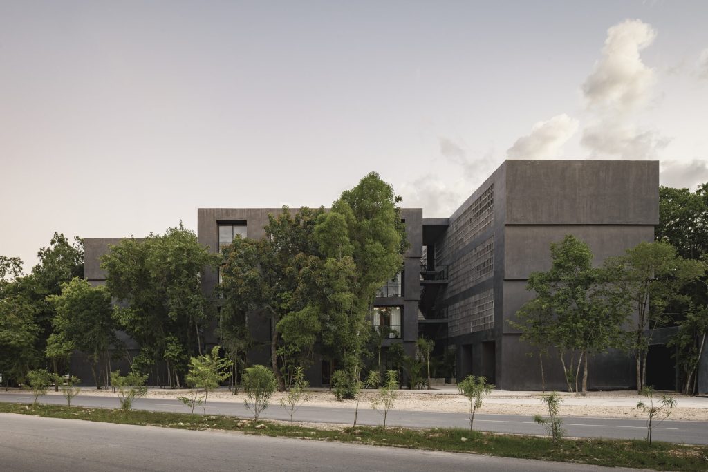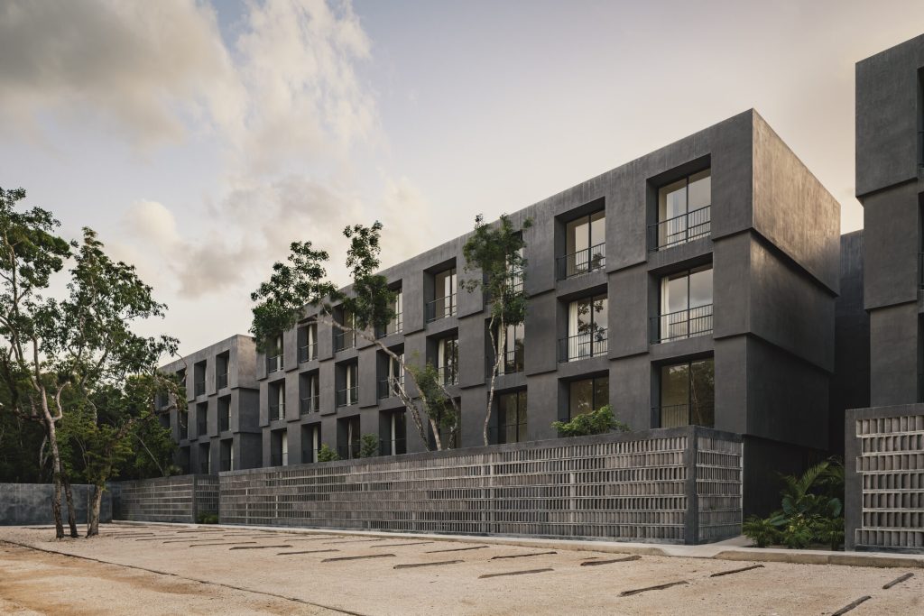 Affordable housing in tulum blends brutalist forms with jungle landscape