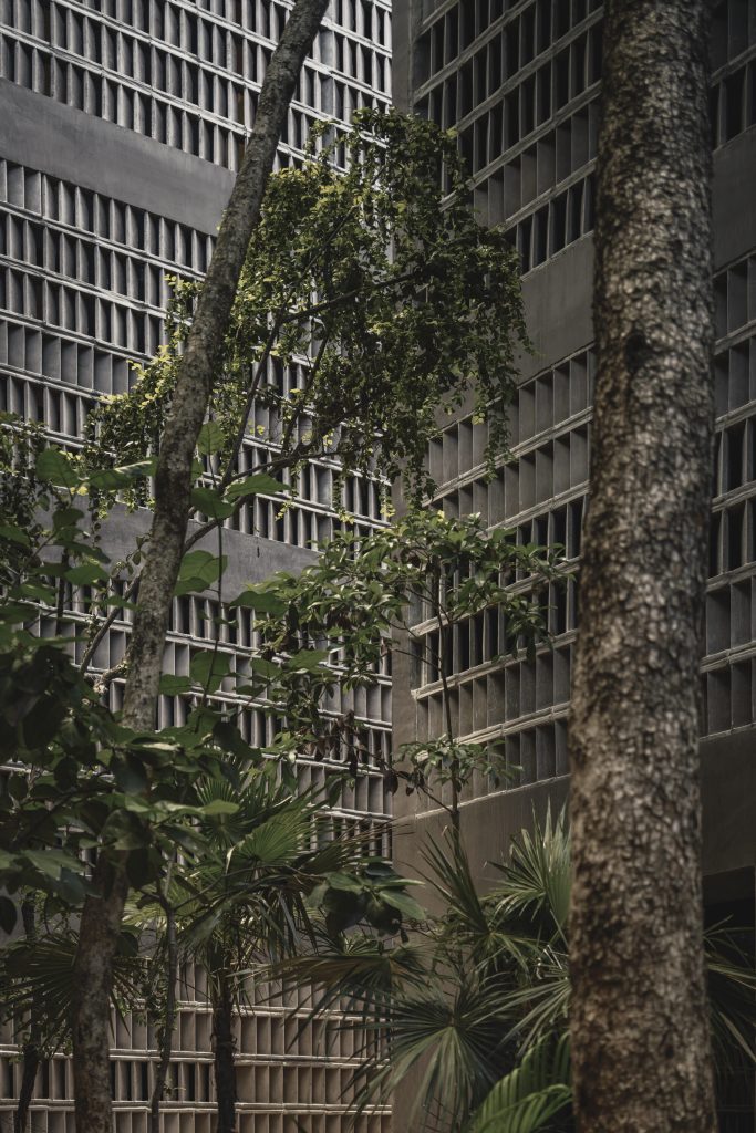 Comprising 200 apartments alongside shared amenities, gardens, and retail spaces, the development balances efficiency with a measured sense of monumentality. Its scale is substantial, yet carefully moderated through spatial and material strategies that dissolve its presence into the surrounding jungle.