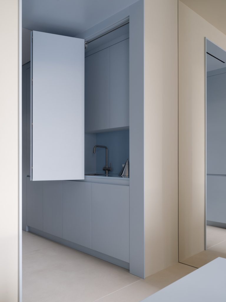 One of the key principles of metabolism is the capacity of objects to transform in accordance with the resident’s needs. Such adaptability makes it possible to conceal elements that are not required at moment and reveal them when they become necessary. In my view, this reflects a minimalist approach to everyday life – abandoning the superfluous in favor of a well-considered, visually clean and simultaneously comfortable space.