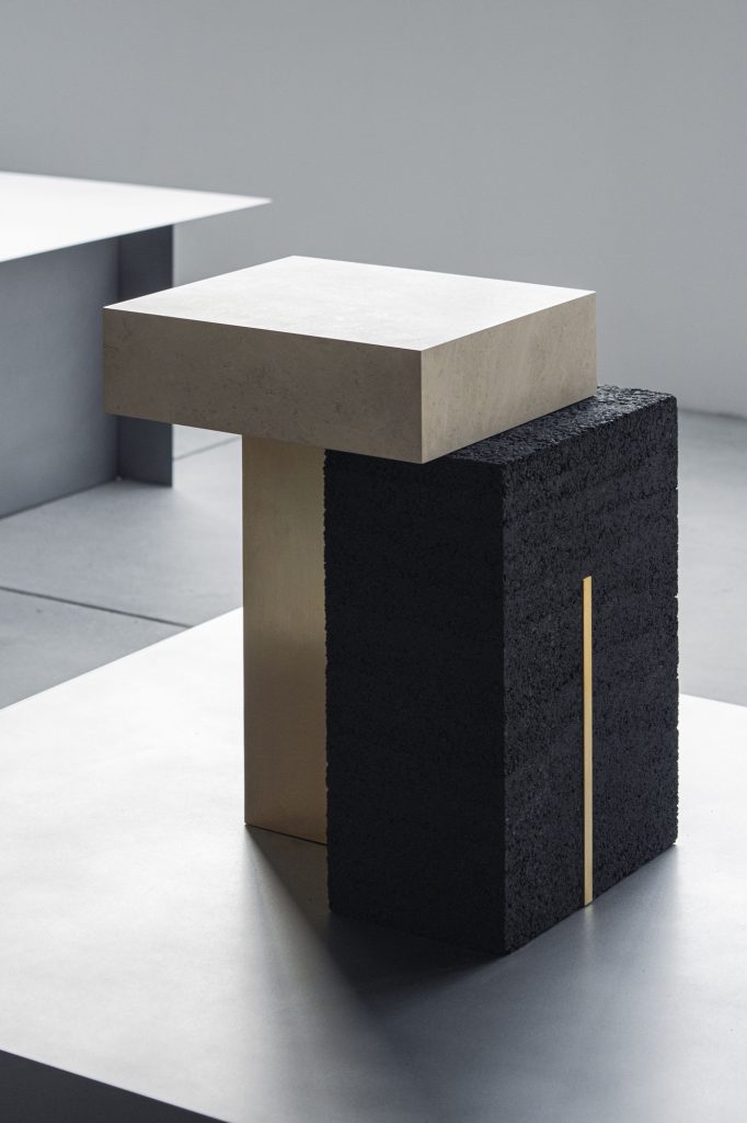 In Japan, asphalt has been used since the Jomon period, when it served as a binding agent connecting wooden shafts and stone arrowheads for hunting. Designer So Koizumi revisits this ancient role, understanding asphalt as a mediator that unites disparate materials. By extending this idea into contemporary design, he brings metal, stone, resin, and other elements together through the transformative power of asphalt, elevating them into a cohesive collection of stools, side tables, and lighting pieces.
