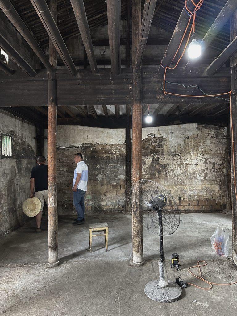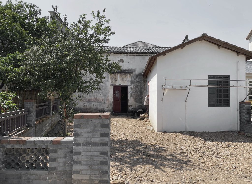 At the village entrance stands a compound comprising a late Qing dynasty house, a small courtyard with an existing tree, and a kitchen annex added in the 1990s. This site marks the starting point of the Hushiguang Art Eco Site, a rural art initiative extending along the Qu River with temporary installations distributed across fields and village paths.