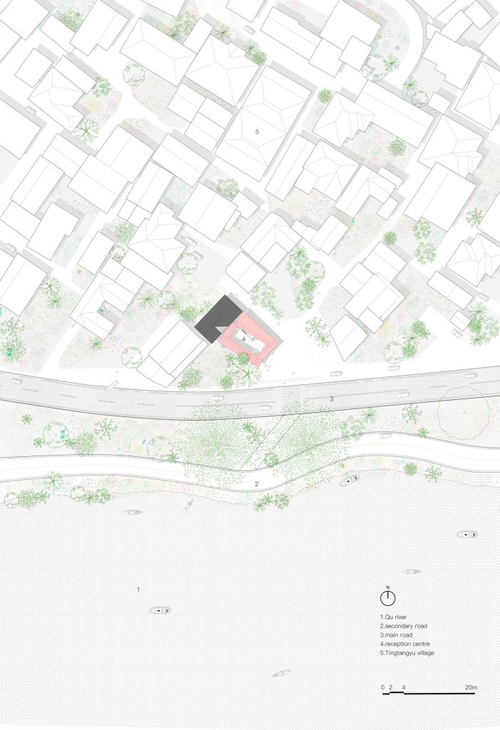 Crossing the bridge over the Qu River leads to Tingtangxu Village, a riverside settlement characterised by vernacular houses and irregular front yards shaped by intersecting village paths. These residual spaces reflect long standing social negotiations between neighbours and form a loose spatial framework for daily rural life.