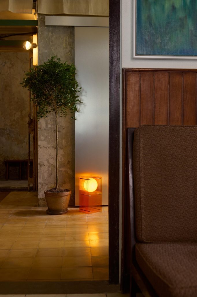 Within Bằng Unboring Objects, the Lớp lighting collection begins with a simple spatial condition, a sphere held within layers. When illuminated, the sphere is multiplied through reflections across acrylic planes, producing an effect that suggests motion despite the object remaining still.