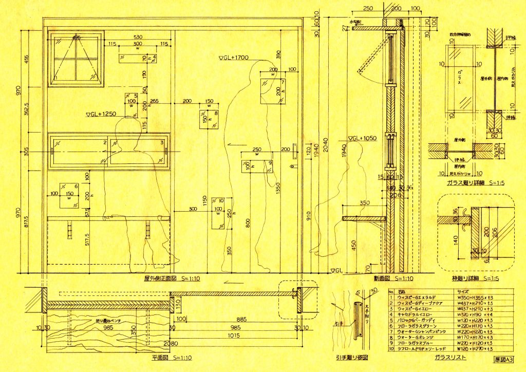 Ten distinct panes of glass are embedded across the surface. Sourced from Japan, the United States, France and Germany, each differs in colour, texture and translucency. Rather than forming a uniform pattern, they are dispersed at varying heights and dimensions. From dusk to midnight, shifting light animates them, revealing silhouettes of customers inside. The small window becomes a device of social recognition. One does not need a fully open façade to connect; a narrow aperture and a glow of light suffice.