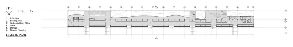 Public accessibility is treated as a central design parameter, and the courtyard is conceived to remain open beyond museum operating hours. The project’s thresholds rely on continuity rather than spectacle. Interior and exterior are linked through a sequence of covered passage, courtyard space, and aligned routes, so that entry feels less like passing a boundary and more like joining the waterfront’s existing rhythms. The museum is framed as connective public environment: a place that supports programmed cultural activity while also functioning as a civic room embedded in everyday urban life.
