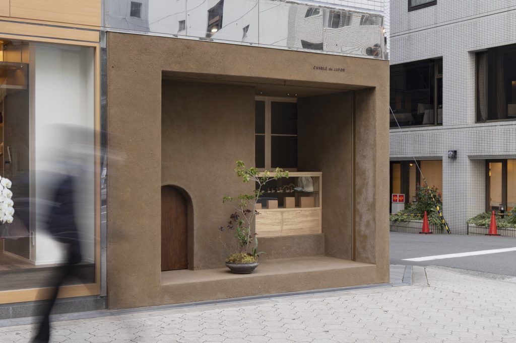 In a dense pocket of Osaka where office towers meet restaurant frontages, a former lottery ticket booth has been reworked into a takeout only pastry shop for Canule dou, a brand devoted to canelés. The tenant unit is extremely compact, and the project treats that constraint as a chance to make identity legible at street speed, with a material presence that does not rely on trend signals.