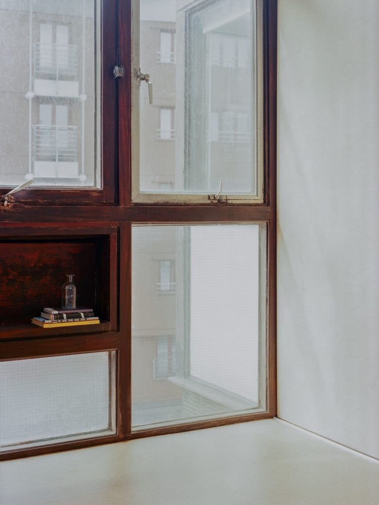 A key achievement of Crescent House lies in performance improvements that do not announce themselves. Internal insulation is applied with precision to address typical 1960s shortcomings while avoiding visual disruption to the apartment’s defining elements. The approach anticipates further refinement through vacuum glazing, suggesting a phased retrofit strategy where comfort, energy performance, and heritage constraints are treated as a single design problem.