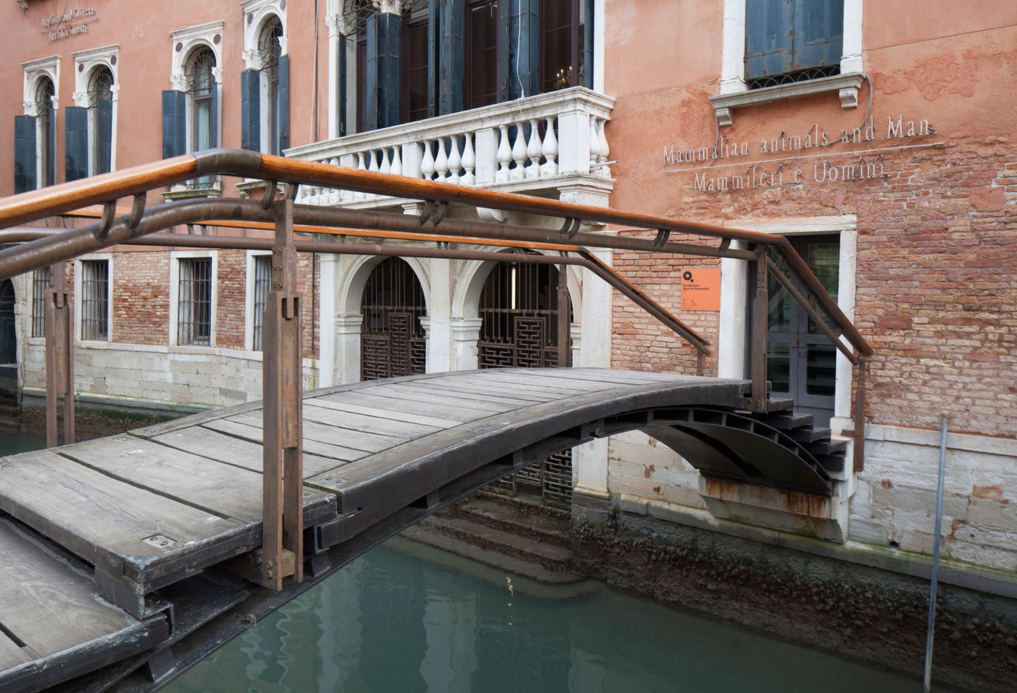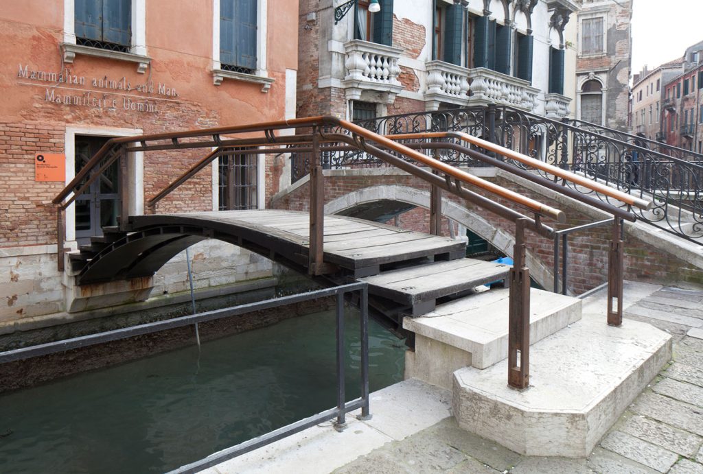 The bridge and entrance at Fondazione Querini Stampalia, Venice, by Carlo Scarpa, water and history in dialogue. Credit: Photo by Riccardo De Cal / Courtesy Fondazione Querini Stampalia (via Divisare).
