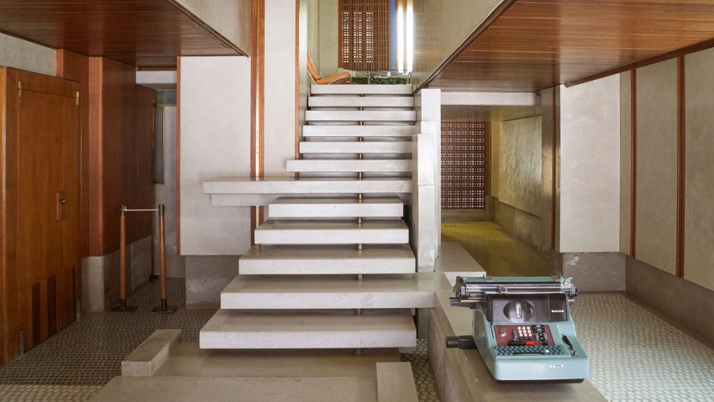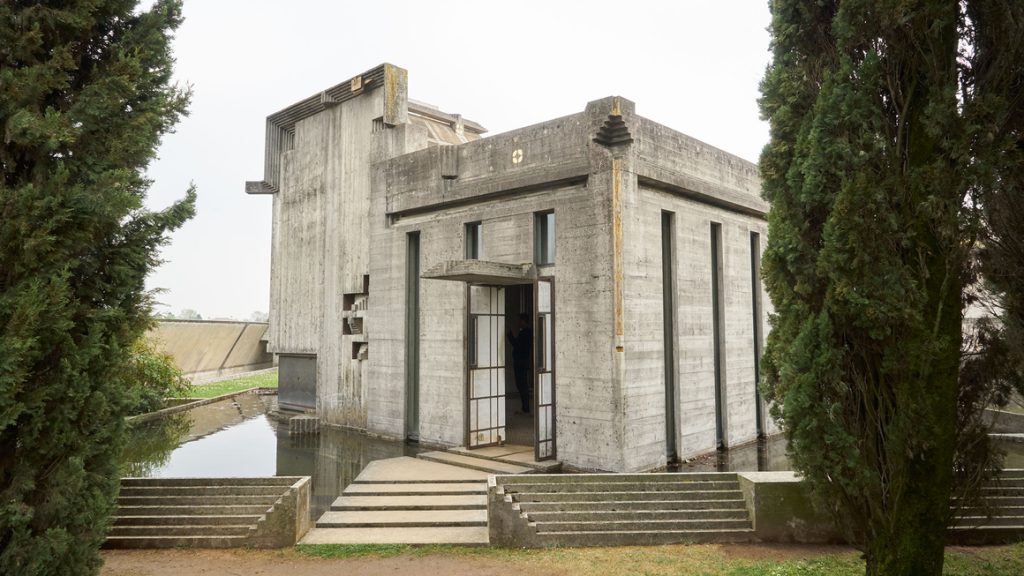 At the Olivetti showroom in Venice, retail space becomes architectural sequence. Display, structure, and movement are inseparable. At the Castelvecchio Museum in Verona, medieval artifacts are repositioned through calibrated distances and frames, producing a critical reading of history rather than a romantic one. At the Brion Tomb, Scarpa’s language becomes a meditation on time and ritual, articulated through concrete, water, and landscape.
