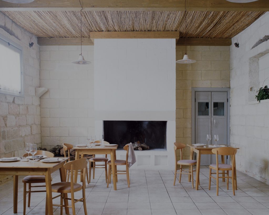 Located in the countryside between Lecce and Vernole, Masseria Caronte is a former rural complex restored by Margine and converted into a restaurant. The intervention focuses on recovering the original spatial structure while adapting the building to a new use with minimal architectural gestures.