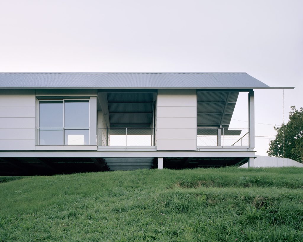 The house is elevated on a system of piers that respond to the irregular topography of the plot. By minimizing excavation and preserving the natural ground, the project maintains continuity with the landscape. The building appears to rest lightly, allowing water, vegetation and existing contours to remain largely undisturbed.