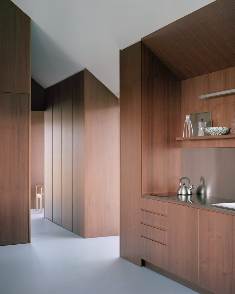 The result is a clear, compact volume anchored to the ground and oriented toward climate and landscape. Its presence is restrained, almost infrastructural, yet carefully proportioned. This dialogue between vernacular typology and contemporary language gives the house a quiet authority within its setting.