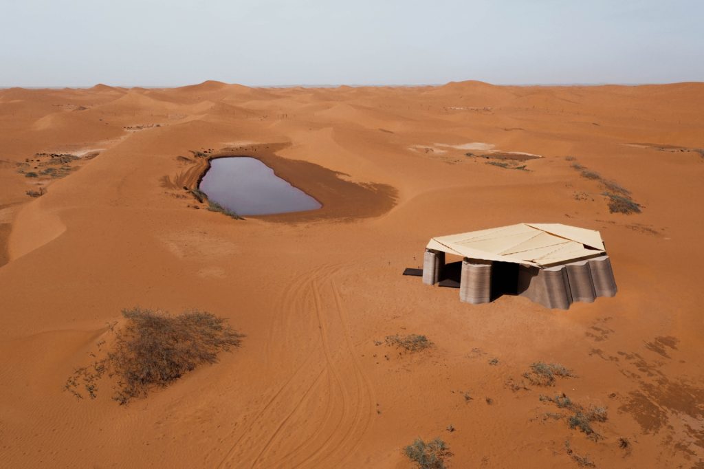 Desert Ark, designed by designRESERVE, is the first 3D-printed concrete structure in China’s desert environment and a pioneering example of sustainable architecture, modular construction, and off-grid desert design. Located on the edge of the Tengger Desert in Inner Mongolia, the project serves both as a field camp for ecological restoration and as a prototype for future extraterrestrial habitats.