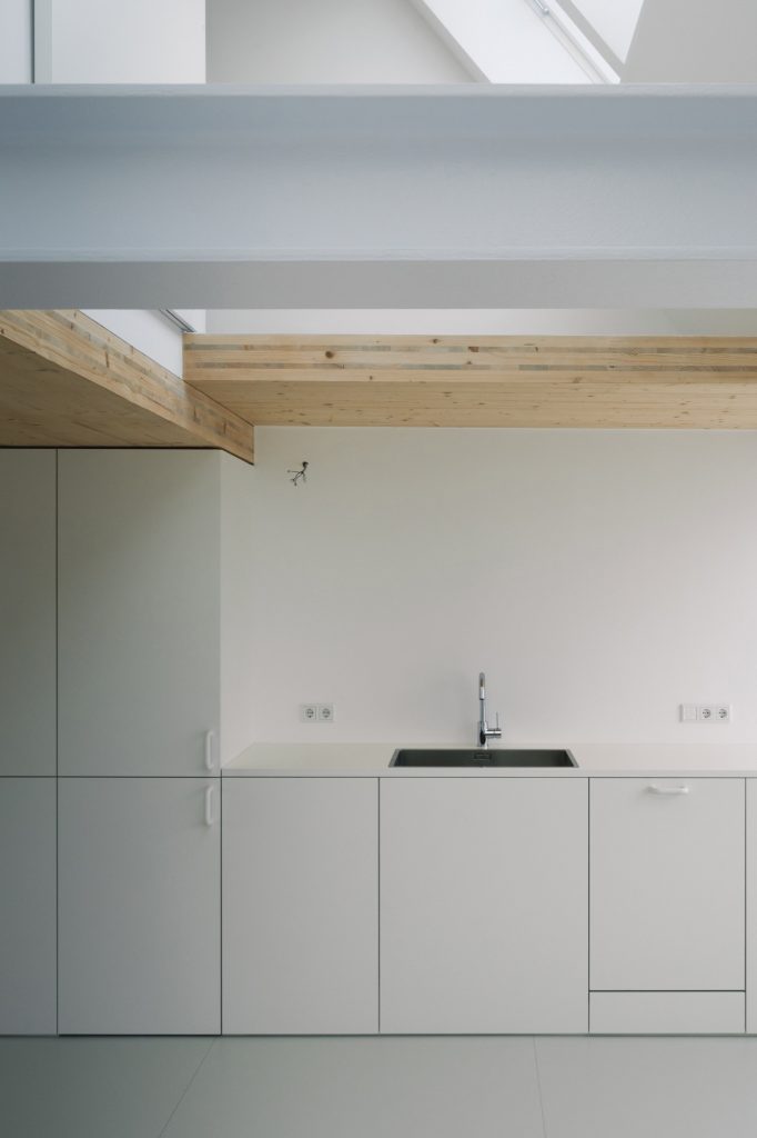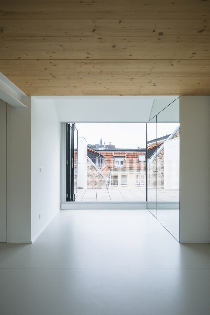 In central Cologne, an unused attic inside a 1940s apartment building becomes the project’s raw material. The roof is removed and rebuilt with a raised ridge line that aligns with neighbouring heights, pushing the allowable envelope to its limit. The shift is calibrated rather than spectacular: it unlocks one extra level and, with it, a 120-square-metre duplex designed as a compact family apartment stitched into the city’s roofscape.