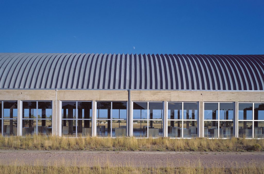 Exterior of the artillery sheds at Chinati Foundation, renovated with barrel-vaulted roof for controlled light entry. Credit: © Judd Foundation / Chinati Foundation.