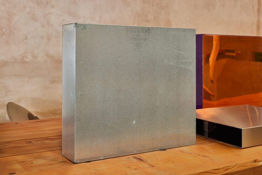 Detail of Judd’s mill aluminum works, showing sharp edges, exposed joints, and material precision.