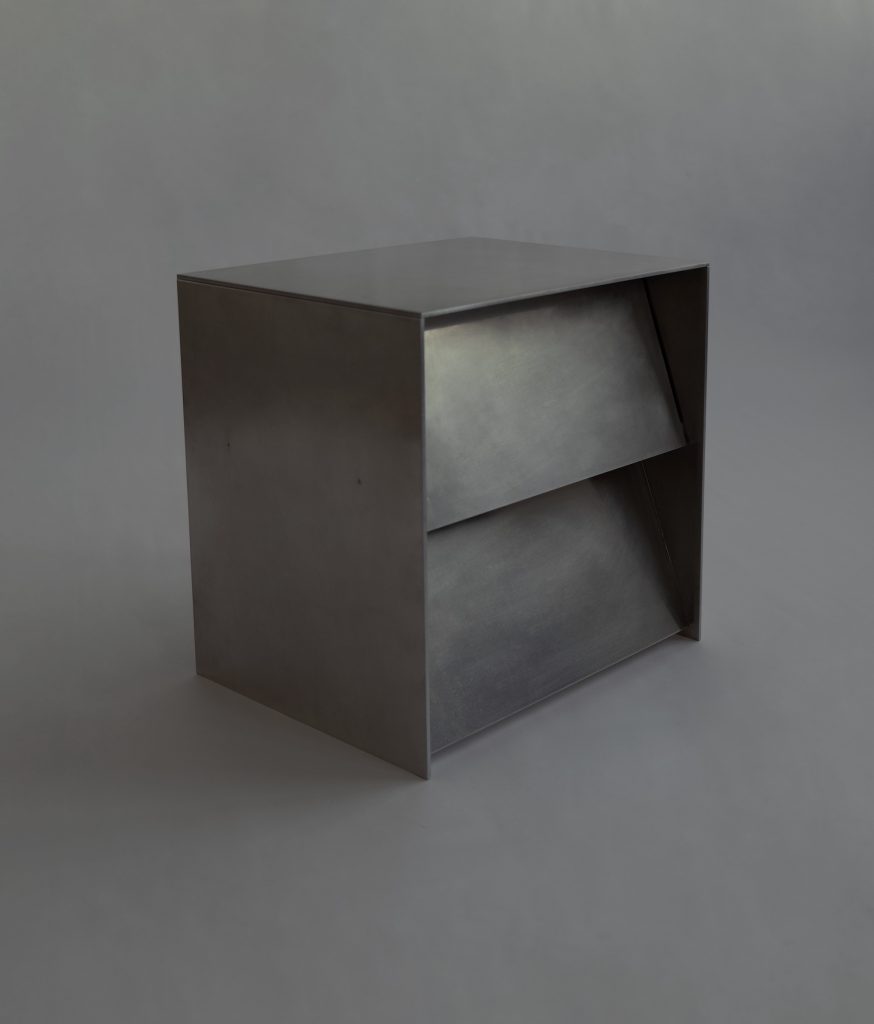 Kubica’s work consistently occupies the threshold between functional design and conceptual art. Trained as a multidisciplinary artist, he frequently combines natural materials such as stone with industrial metals, using contrast as a conceptual tool. In Drawer 440, this duality is expressed through the tension between precision fabrication and hand finished surfaces, between modular logic and individual variation.