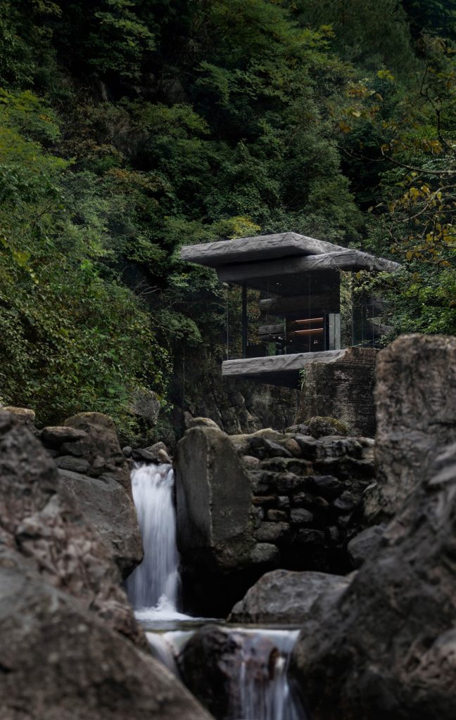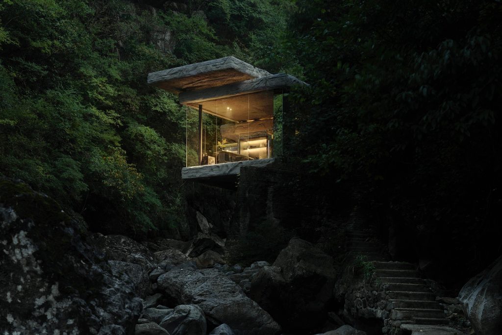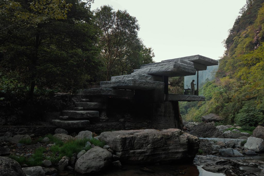 In the Nanchuan District of Chongqing, Drifting Stones frames a quiet encounter with the mountains. Set among evergreen trees, sheer cliffs and a narrow stream, the project is deliberately small in scale, yet precise in how it edits the landscape. It comprises two moves, a stone staircase that tracks the slope and a pavilion tucked into the hillside, creating a sequence that encourages visitors to slow down, look outward, and listen to water as a constant measure of place.