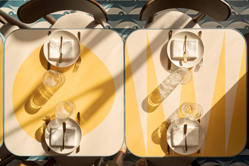 Designed by Alejandro Cateto and his studio Cateto Cateto, the space is conceived as an enveloping scenography. The interior does not rely on singular gestures but on a layered composition of references that gradually reveal themselves. Cushions echo the undulating lines of Carioca beaches, while ceramic tiles, rendered in a restrained palette of whites and blues, anchor the space in a distinctly Portuguese sensibility.