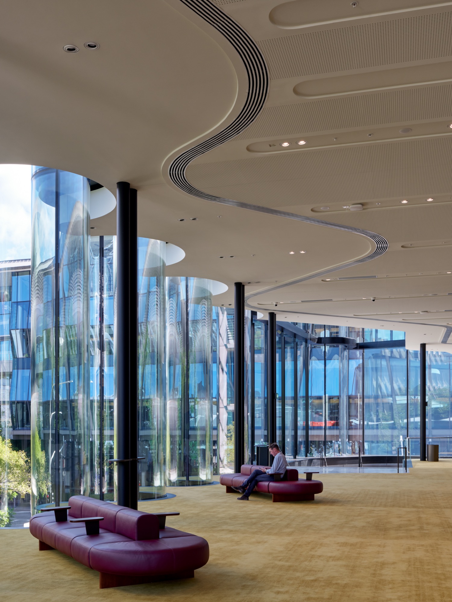 This fluid geometry draws from a prose poem by Aboriginal Elder and artist Lilla Watson, referencing the rippling surface of the Brisbane River. The building thus embeds cultural memory within its material expression, allowing Indigenous narratives to inform not only symbolic gestures but spatial experience.
