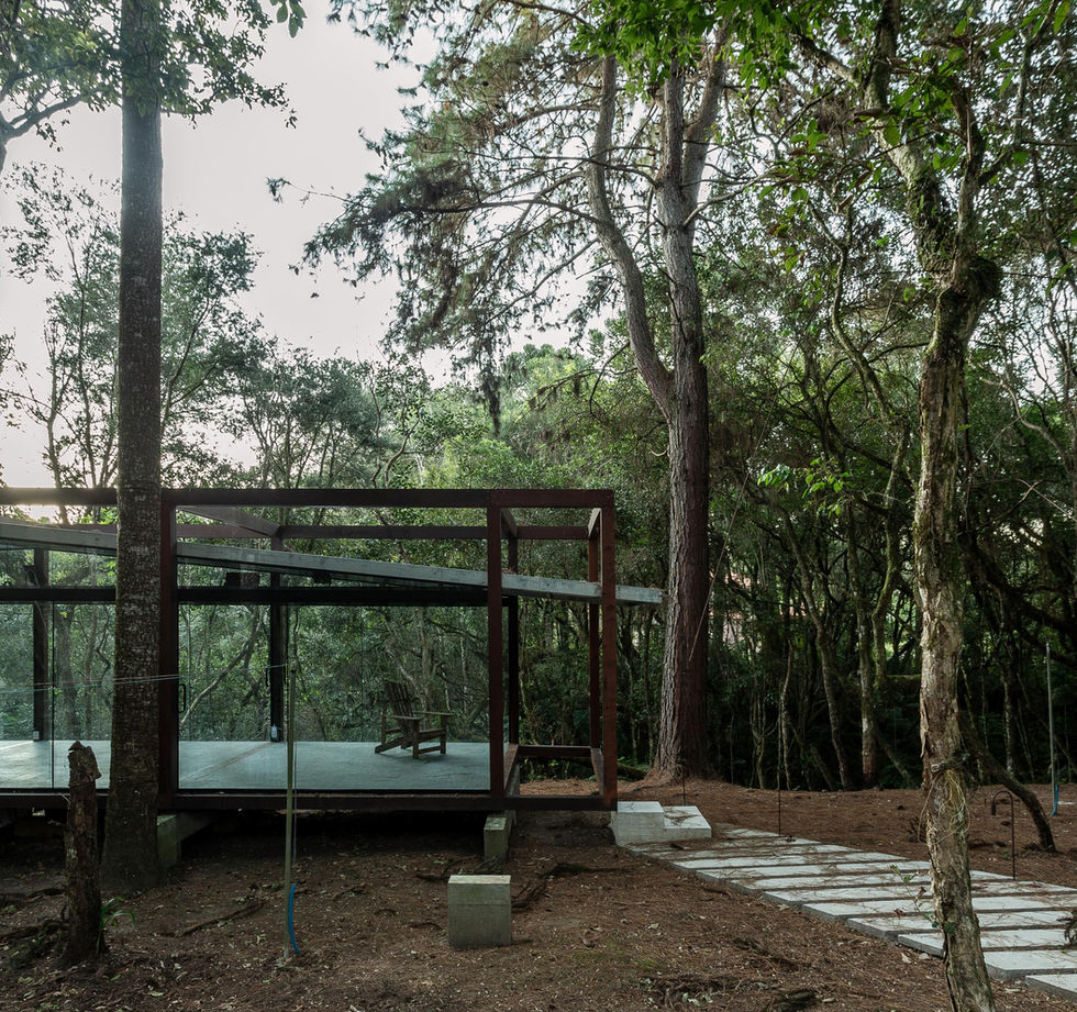 Set within the Atlantic Forest of southern Brazil, the Guaju Pavilion proposes an architecture that does not seek attention, but attunement. Rather than arriving as an object placed in the landscape, the pavilion emerges from a careful reading of geography, climate, and silence. Conceived as a space for physical practice, bathing, and meditation, it reflects a broader inquiry into how architecture might support life rather than disrupt it.