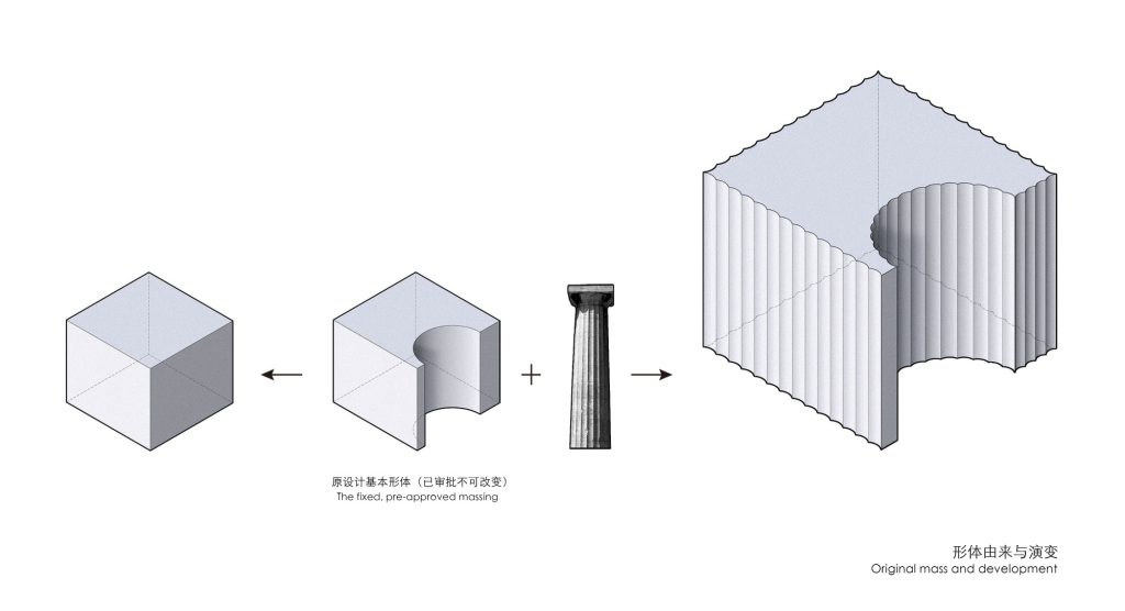 The result is an architecture conceived from the inside out. Functional and curatorial requirements reshaped the inherited frame, prompting a recalibration of structure and facade while remaining faithful to the original planning prototype of a cube truncated by a right cylinder. Within the strict limits of the existing underground grid, the building evolves into a new spatial entity that is at once adaptive and formally precise.