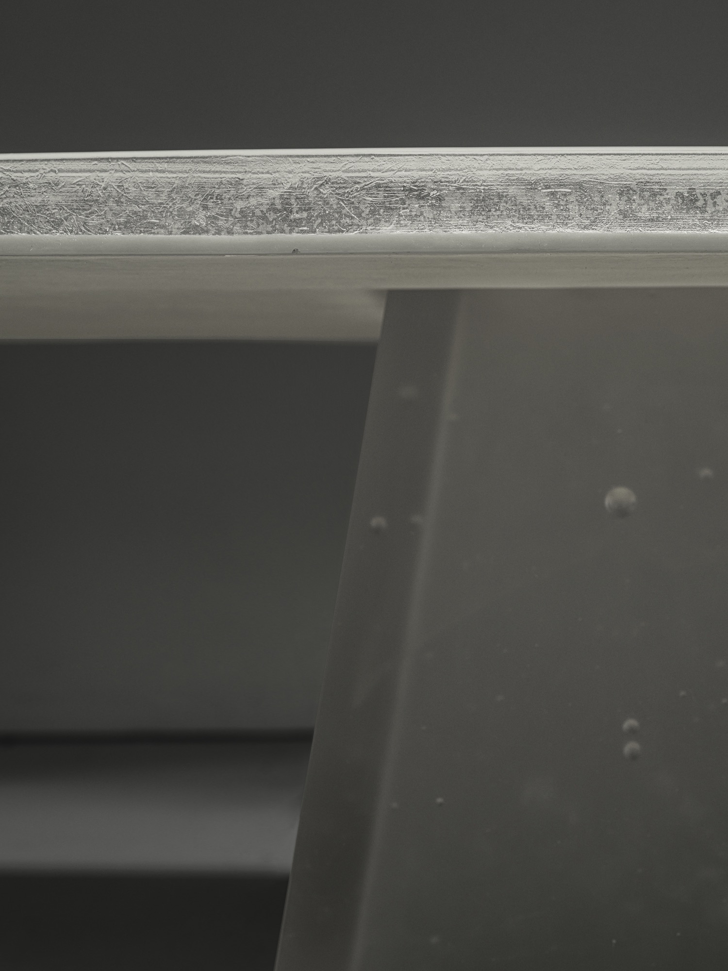 The making of the table is inseparable from its presence. Each component is produced through an extended and tightly controlled casting process. The base undergoes nearly two weeks of firing and annealing in a kiln calibrated for absolute precision, while the tabletop follows its own equally demanding cycle. The mold used to cast the base alone weighs hundreds of pounds, a physical reminder of the technical mastery required to achieve such apparent simplicity. This rigor results in surfaces that feel resolved and deliberate, with beveled edges and subtle transitions that reward close observation.