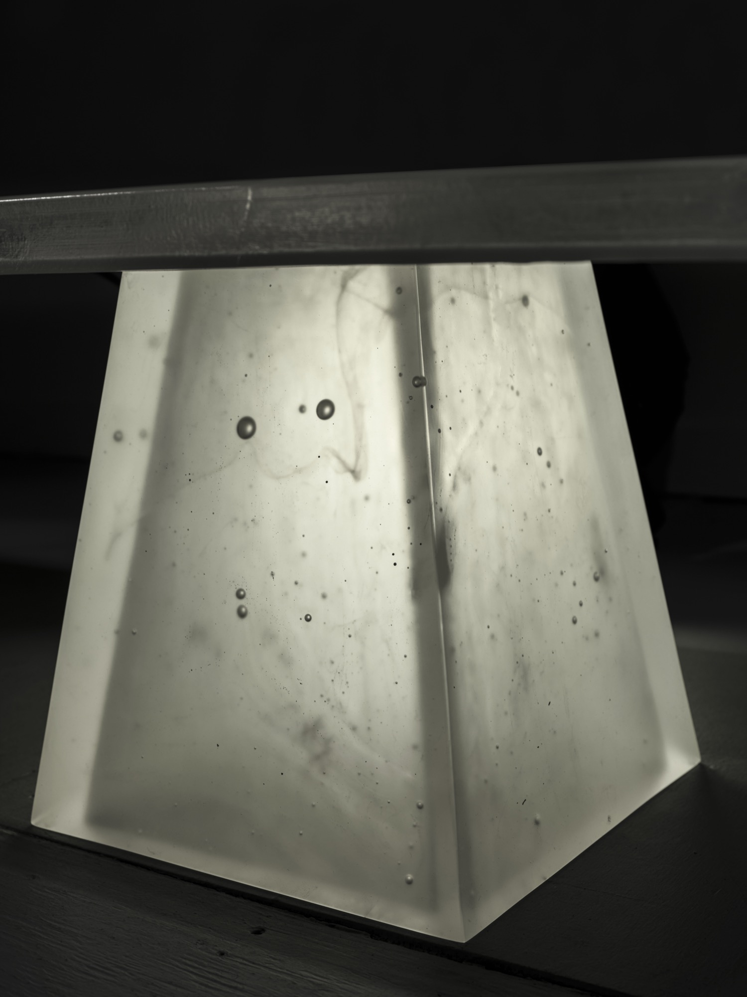 The Helle Coffee Table by Bowen Liu approaches contemporary brutalism with an unexpected restraint. Rather than relying on mass or opacity alone, the piece translates architectural weight into clarity, using solid cast glass as both structure and atmosphere. Its pyramid base anchors the table with a sense of composure, while the transparency of the material allows light to soften the form. What emerges is a quiet monumentality, an object that feels grounded yet luminous, architectural yet intimate.