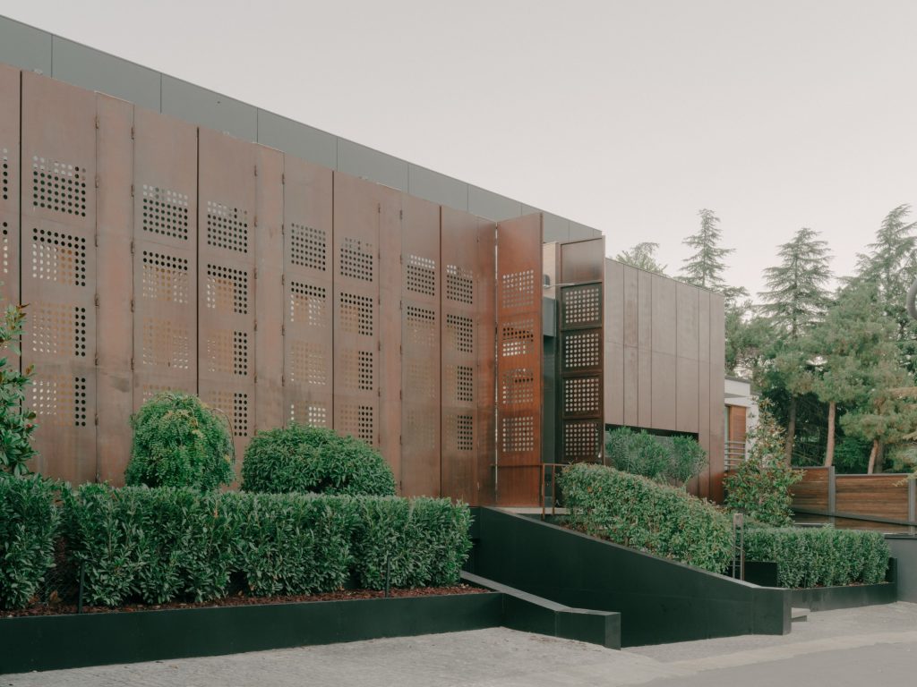 Set within the hillside district of Okrokana, overlooking Tbilisi, the House of Iron Doors proposes a radical inversion of the suburban domestic model. In a context where houses are typically concealed behind high perimeter walls, the project eliminates the distinction between building and boundary. Architecture itself becomes the enclosure.