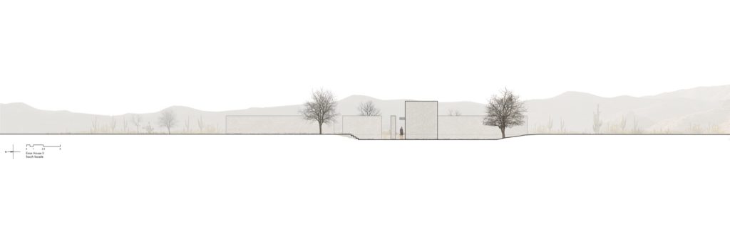 Such spatial sequences evoke the architecture of ancient monasteries, where cloisters and open courtyards shaped both movement and contemplation. Here, architecture becomes a framework for perceiving time. Light changes across the day, shadows move along the walls, and the mountain gradually alters its tone as the sun travels across the sky.