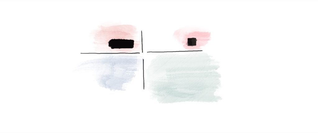 The third quadrant forms the heart of the house. Conceived as a single open living space, it shelters the daily life of its inhabitants within a calm and almost monastic atmosphere. At its centre stands a compact service volume that contains the kitchen, bathroom and technical functions. This simple insertion subtly separates the public and private areas while preserving the continuity of the open plan.