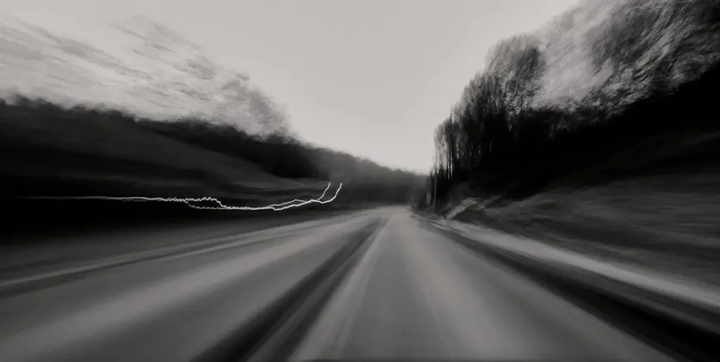 Black White and Gray, photographed along Interstate 78, returns to monochrome while embracing motion blur and abstraction. Industrial forms dissolve into rhythmic structures, suggesting a landscape shaped as much by passage as by construction.