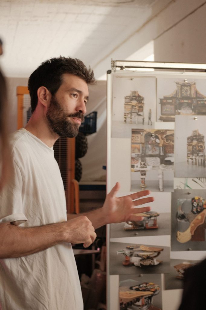 After eight years working at Nacho Carbonell’s studio, Lambridis returned to Athens to establish his own practice. His background in engineering, combined with formal artistic training, gives him an unusually precise sensitivity toward construction, joints, and structural logic. His works unfold through open narratives, consciously or unconsciously merging disparate materials and forms until a new coherence emerges.