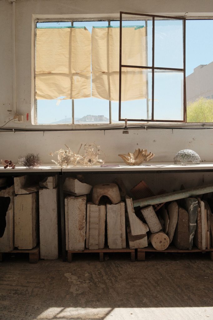 It was under this calm warmth that we first met Kostas Lambridis. Standing in the light, he waved us up with an openness that immediately dissolved any sense of distance. Moments later, we were climbing the stairs to his second floor studio, where material hierarchy is deliberately suspended and everything is allowed to speak.