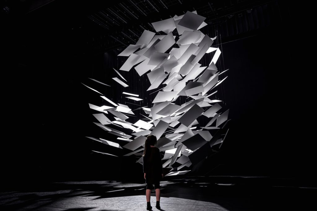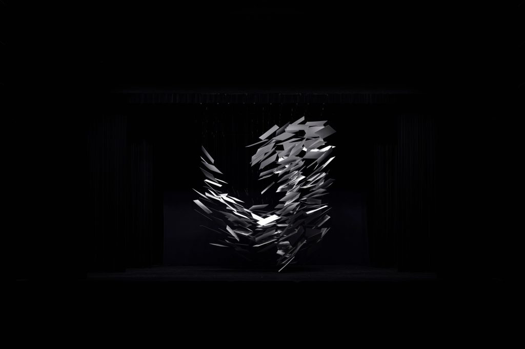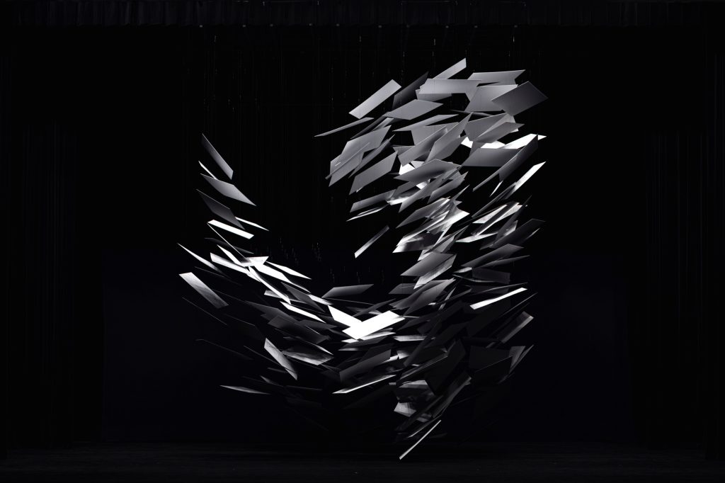 A single presence hangs above the stage in Shibuya, Tokyo, and the room reorganises itself around it. Into the Space, by Nakamura Kazunobu Design-works, is an installation conceived as both scenography and spatial experiment: Japanese dance performances unfold beneath the object, and audiences are invited onto the stage before and after the show to inhabit the work at close range.