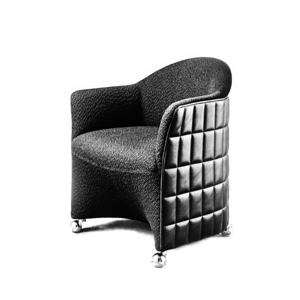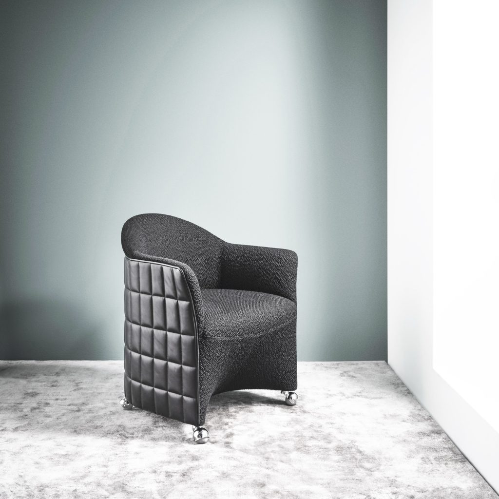 The execution of JOSEPH relies on an exacting level of craftsmanship. The quilted shell, in particular, demands absolute precision, where even minor deviations would disrupt the overall composition. Wittmann’s expertise is evident in the alignment of seams, the consistency of stitching, and the integration of materials across the chair’s surfaces. The result is a piece where construction and ornament are inseparable.