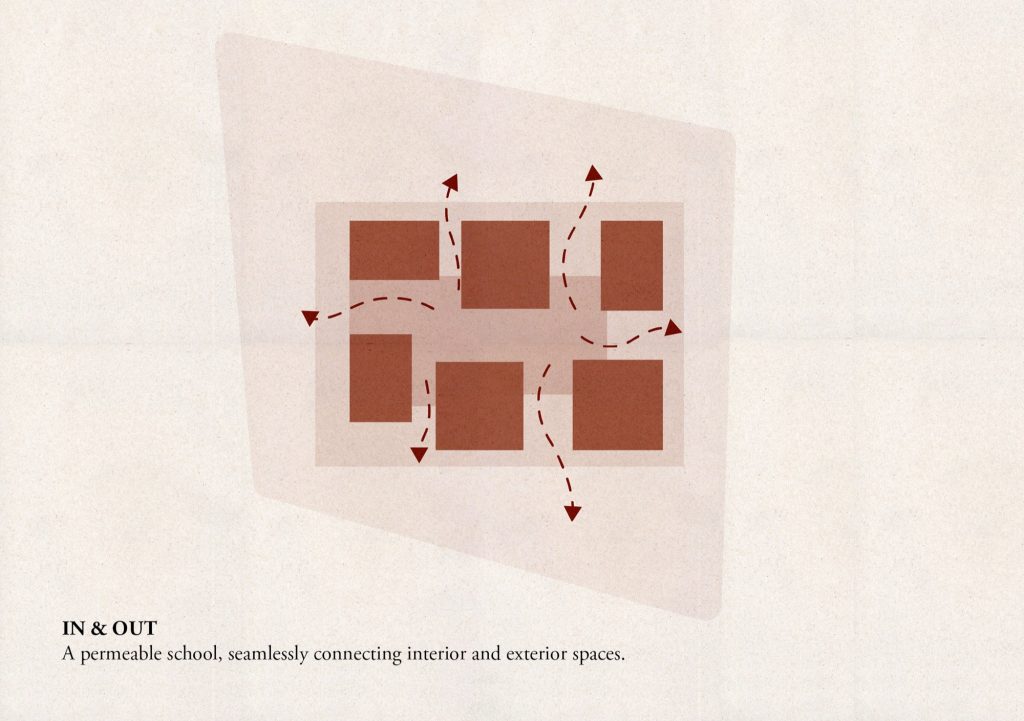 Nicolò Chinello shared: “Behind its compact appearance, the building reveals a carefully articulated play of solids and voids. Each classroom opens outward into an outdoor learning patio, protected and framed by the surrounding courtyard. These spaces function as extensions of the classroom, allowing teaching, play, and exploration to flow naturally between inside and outside.”