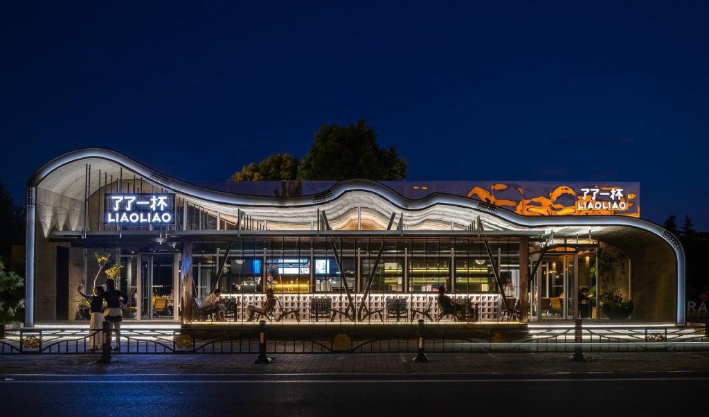 Situated adjacent to one of China’s most significant cultural repositories, LIAO LIAO Cafe operates as a spatial mediator. It softens the transition between curated heritage and daily life, demonstrating how contemporary hospitality architecture within a cultural precinct can assert identity without mimicry. Through sectional invention, structural expression and a landscape informed roofline, Shan and Li propose a building that earns its place beside the museum while remaining resolutely of its own time.