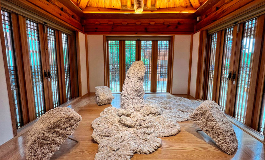 When She received the LOEWE Foundation Craft Prize in 2021 the jury highlighted the work’s monumental scale and extraordinary craftsmanship. The installation demonstrated how techniques historically associated with domestic labour could generate a sculptural environment capable of transforming architectural space.