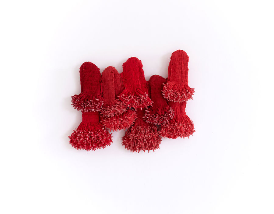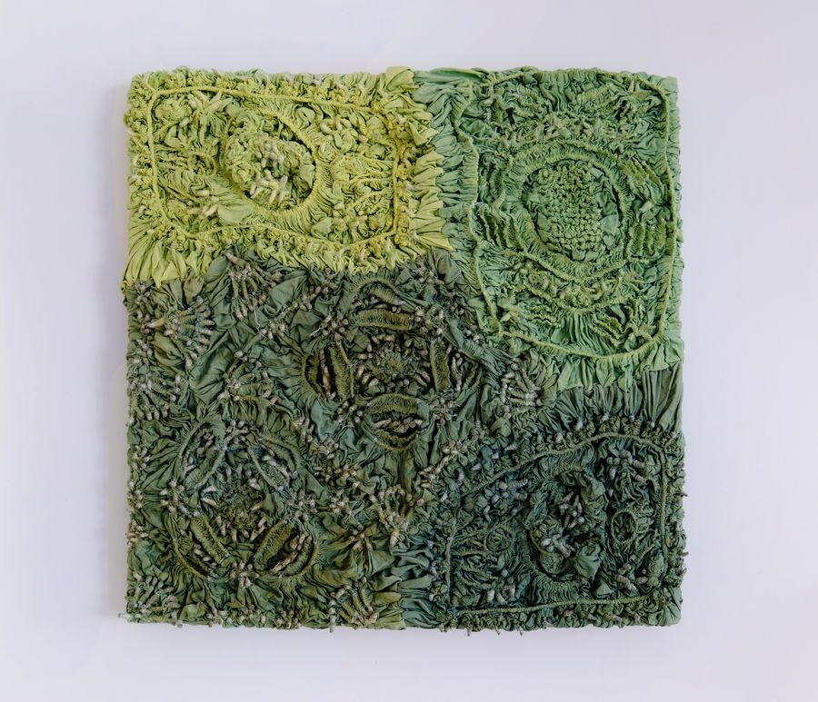 Rather than reproducing traditional motifs, Lin adopted the structural logic of these techniques. The cloth is manipulated repeatedly until it acquires density, volume and tension. The resulting forms expand beyond the flat plane of textile and enter the realm of sculpture.