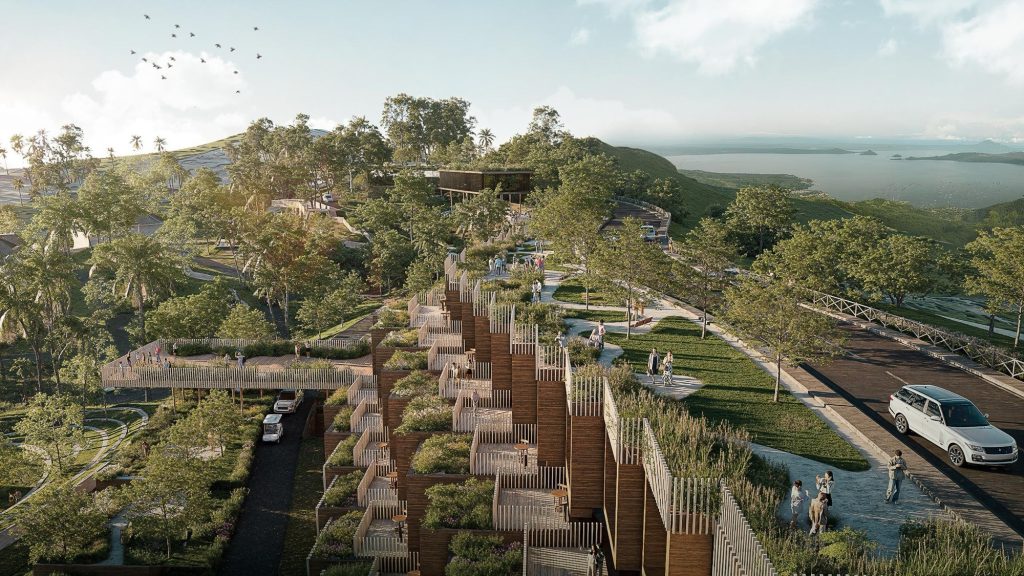 That shift matters because it changes what “leisure” can mean. Here, leisure is not an escape from place, but a deeper entry into it. The masterplan stays outward looking, oriented toward the larger field of Batangas, with Mount Batulao and Taal Lake shaping view corridors, movement, and gathering spaces.