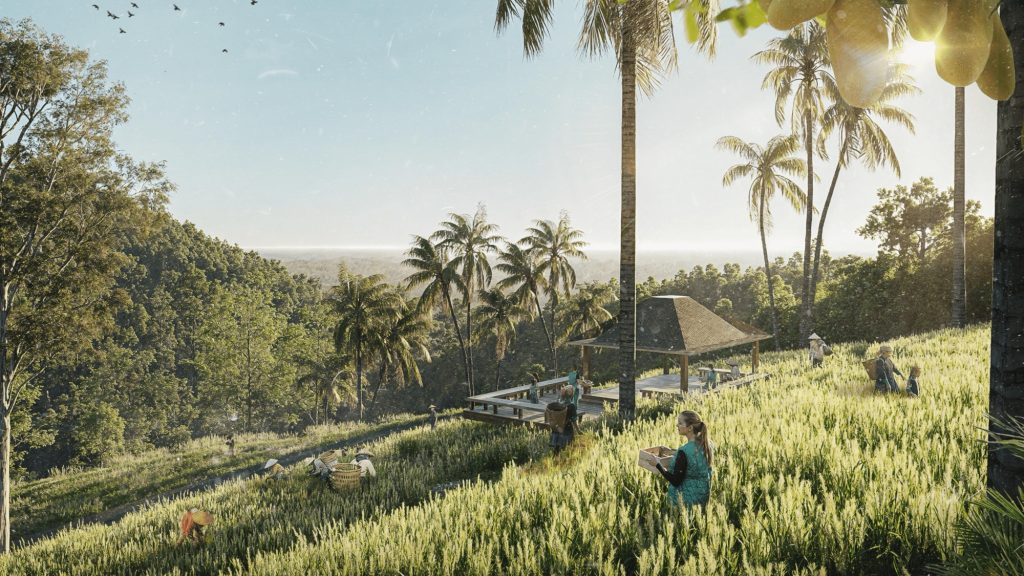 The social brief is equally direct: improving farmer income through direct trade, shared agricultural programmes, and on site markets, so the project’s value circulates through the community that the landscape already supports.